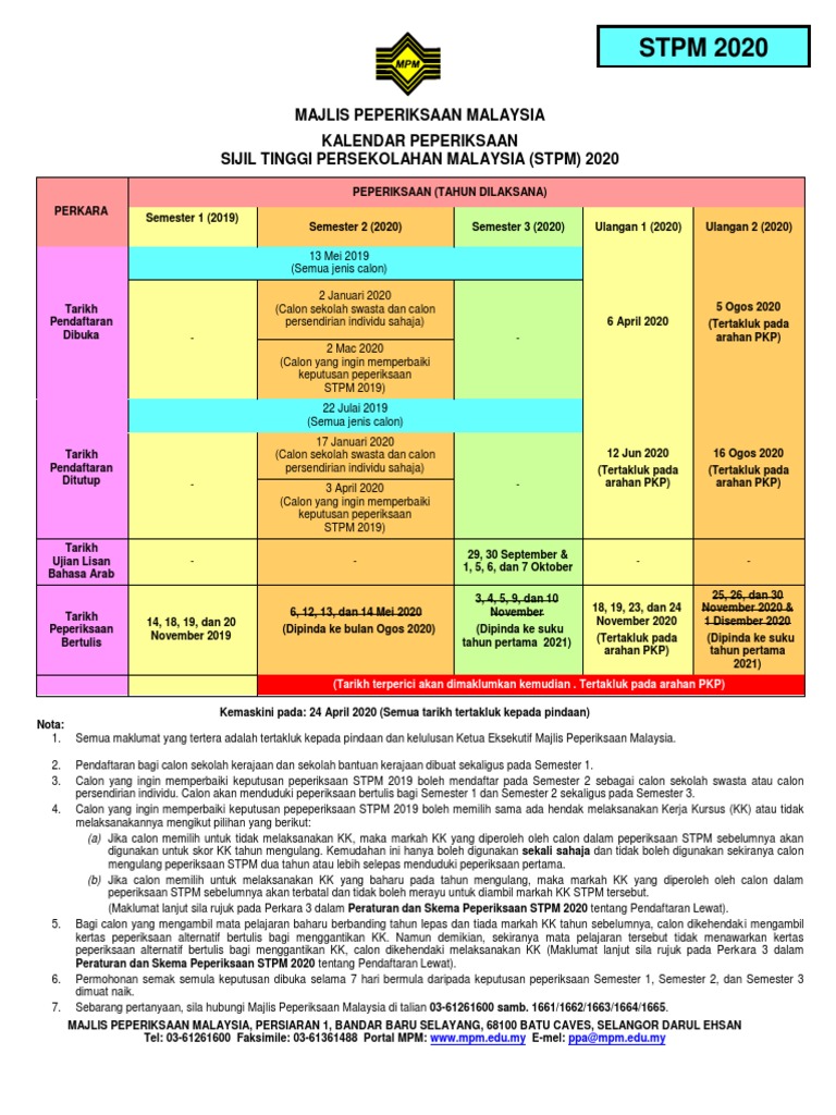 Jadual peperiksaan sijil tinggi persekolahan malaysia (stpm) tahun 2020. Adakah anda calon ujian psikometrik tahun 2019? 15 januari 2019 (semua tarikh tertakluk kepada pindaan) nota: Tarikh dan semakan keputusan stpm 2020 secara online dan sms. Semakan keputusan upu 2019 melalui sms universiti awam (ua) dan politeknik premier.