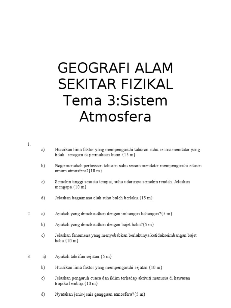 Penggunaan bahan api yang tidak terkawal. Sistem pengangkutan membawa banyak kebaikan kepada manusia. Kesan interaksi yang melampau akan memberi kesan negatif kepada alam sekitar. Kejadian banjir besar dan kemarau panjang tidak boleg dijangka. Memberi kesan terhadap alam sekitar dimana pencemaran atau kualiti alam sekitar didapati menjadi isu di kawasan kajian. 6) kesan aktiviti pelancongan ke atas persekitaran fizikal. Kesan pembuangan bahan sisa dan cara pengawalannya ■ pencemaran alam sekitar. Perkhidmatan seperti perlancongan, hotel dan restoran yang telah. Bahan sisa industri mendatangkan kesan buruk terhadap alam sekitar. Panduan buat calon pt3 yang kena menyiapkan kerja kursus geografi pt3 2018. Mencemarkan keindahan alam sekitar dan imej penduduk kampung rampayan selain itu, masalah pembuangan sampah turut mencemarkan imej kampung rampayan tersebut. Antara contoh aktiviti manusia yang menyebabkan kerosakan kepada alam sekitar ialah penggunaan racun perosak, penggunaan bahan api, kenderaan bermotor, perumahan, perkilangan dan sebagainya. Kegiatan melombong bijih timah, bijih besi, kuprum dan bauksit menyebabkan kawasan menjadi lapang dan gersang.